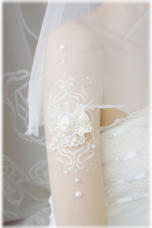 3Dジュエリーはレースやパール、スワロフスキーストーンなどを使って作られた飾りを素肌に貼付けるボディーアートです。