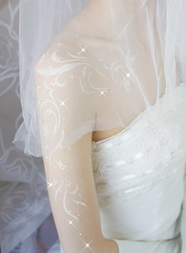 ![]() ボディーアートジュエリーとは ボディーアートジュエリーは、エアブラシによってお肌専用インクを素肌に吹き付け、 その後ラメパウダーとスワロフスキーやパールなどのラインストーンを飾り付けるボディーアートです。 当サロンでは数多くのオリジナルデザインをご用意しております。 また、ご希望にあわせてデザインをオーダーすることも可能です。 グランニュアージュの一味違ったボディーアートジュエリー 100を超えるオリジナルデザイン グランニュアージュの強みは高いデザイン力です。 当サロンのボディーアートジュエリーデザインは、すべてオーナーである、夏目雅が手がけております。 ボディーアートの世界に15年に渡り携わってきた夏目は、素肌という立体的かつ曲線的なキャンパスに描かれたときに美しくみえるボディアートジュエリーをデザイン致します。 また、そのデザインはボディーラインをも美しく魅せてくれます。 グランニュアージュオリジナルデザインはすでに100を超えております。 サンプルをご覧いただきお選びいただきます。 また、お客さまのイメージをおききしフルオーダーで一からデザインをお作りすることも可能です。 繊細で気品溢れるボディーアートジュエリーで特別な日に最高の演出をさせていただきます。 ドレスに合わせてお色味を調整 グランニュアージュではお客様のウェディングドレスのお色味に合わせて白インクを調合いたします。 一口に「白」と言っても、ドレスによって黄みがかった白や青みがかった白等様々ございます。 お客様のドレスのお色味をお伺いして、それに合わせて白色を微調整して調合することによって、より自然で統一感のあるプロポーションに仕上げさせていだきます。 もちろんお好きなお色によるカラーボディージュエリーも可能です。 |